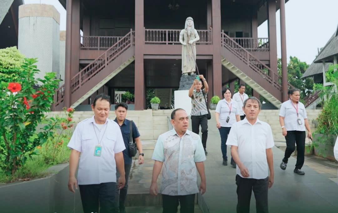 Yusra mengamati setiap detail arsitektur dan ornamen Anjungan Bolmong yang merepresentasikan sejarah serta kearifan lokal yang diwariskan turun-temurun. Ia menegaskan, bangunan ini bukan hanya ruang pamer, tetapi penjaga ingatan kolektif masyarakat Bolmong.