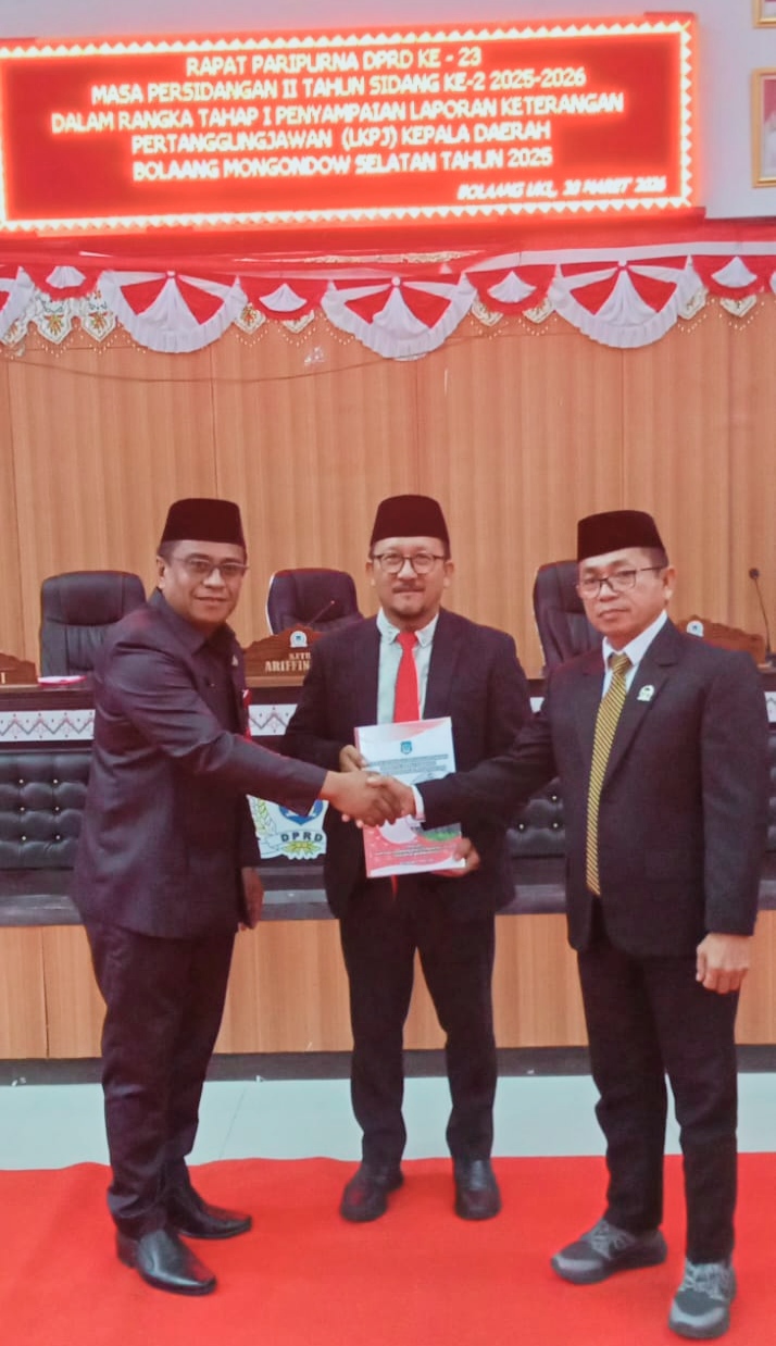 NalarSulut—Dewan Perwakilan Rakyat Daerah (DPRD) Kabupaten Bolaang Mongondow Selatan (Bolsel) resmi menggelar rapat paripurna tahap I penyampaian Laporan Keterangan Pertanggungjawaban (LKPJ) Kepala Daerah Tahun Anggaran 2025, Senin (30/3/2026).