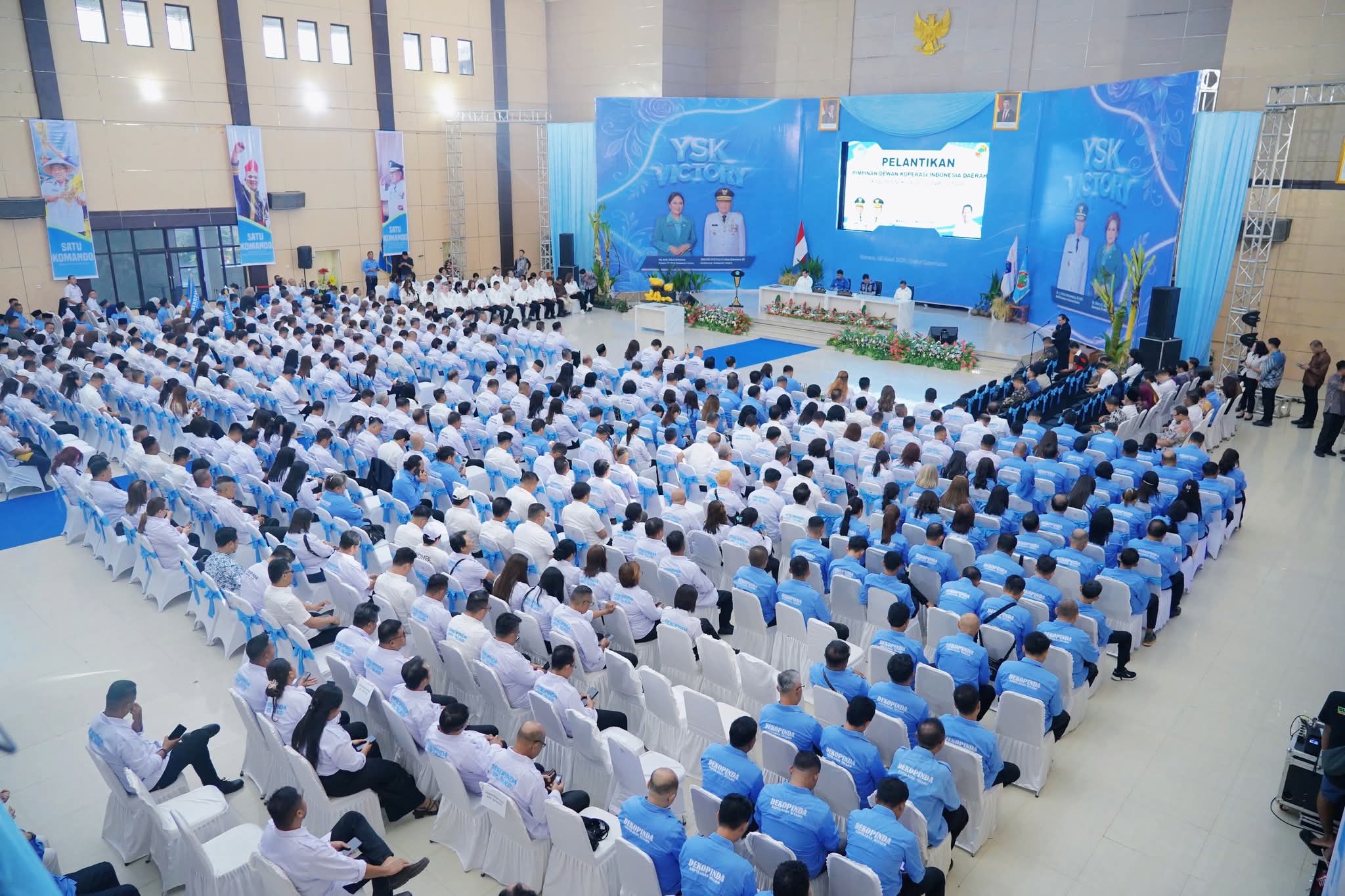 Bupati Yusra Alhabsyi bersama Wakil Bupati Dony Lumenta menghadiri pelantikan Pimpinan Dewan Koperasi Indonesia (Dekopin) Daerah kabupaten/kota se-Sulawesi Utara yang digelar di Graha Bumi Beringin, Jumat (6/3/2026).